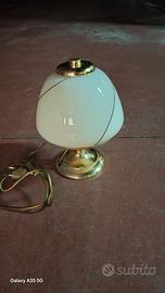 lampadario in vetro e finiture in ottone. Lampada da comodino abbinata. possibilità di vendita separata