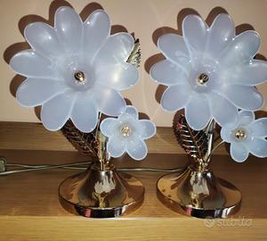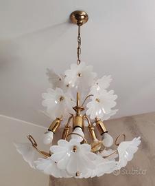 Lampadario da camera con due abat-jour da comodino. Fiori in vetro perlato e finiture in metallo dorato. Consegna presso sede venditore.