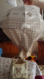 Vendo bellissimo lampadario da cameretta in tessuto color beige/ecru', ad effetto mongolfiera. Sfoderabile completamente per poter essere lavato. Possibile utilizzarlo in versione lampadario normale.
