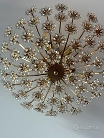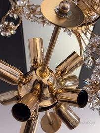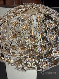 Raro Set Hollywood Regency PALWA - Plafoniera e Coppia di Applique in Ottone Dorato 24K e Cristalli Swarovski (Anni '70) Descrizione: In vendita una splendida e rara parure completa di illuminazione vintage, attribuita alla prestigiosa manifattura tedesca Palwa (Palme & Walter), risalente agli anni '60/'70. Il set incarna perfettamente l'estetica lussuosa dello stile Hollywood Regency. Il set è composto da: 1 Grande Plafoniera centrale: Struttura circolare in ottone placcato oro decorata con una cascata di fiori in cristallo molato. 2 Applique coordinate: Eleganti lampade da parete a forma di bouquet floreale, realizzate con i medesimi materiali preziosi. Dettagli: Materiali: Ottone massiccio con doratura originale, fiori in cristallo Swarovski di alta qualità (effetto arcobaleno alla luce). Condizioni: Eccellenti. La doratura è brillante e i cristalli sono integri (segnalo solo la mancanza di un minuscolo dettaglio centrale su un singolo fiore, assolutamente impercettibile nell'insieme) Stile: Mid-Century Modern / Luxury Vintage. Un pezzo d'arte luminosa che trasforma qualsiasi ambiente, ideale per saloni di rappresentanza o camere da letto di prestigio. condizioni come da foto Acquistato inizio anni 80, uniproprietario preferibile consegna a mano , pagamento bonifico istantaneo spedizione da valutare foto su richiesta
