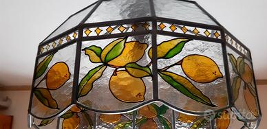 Telaio saldato al piombo, vetri intagliati con decoro "limoni".
