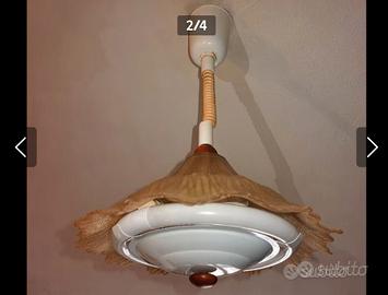 Vendo per inutilizzo lampadario da cucina/sala da pranzo in vetro con inserto in legno. Altezza regolabile Neon 32 watt compreso usato pochissimo
