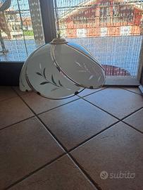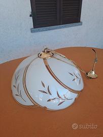Vendo lampadario da cucina in metallo color oro e vetro a spicchi bianchi con decorazioni trasparenti