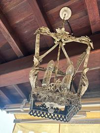 Lampadario da esterno stile shabby chic. Lanterna in ferro battuto con 4 lampadine