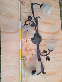 lampadario da parete in ferro battuto a 4 luci in vetro satinato. possibile consegna a Brescia e paesi limitrofi. se interessati lasciare n. di telefono x eventuale contatto.