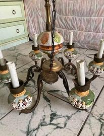 lampadario da sala 6 luci ceramica di capodimonte vendo funzionante e cosi' come si vede in foto per rinnovo arredo
