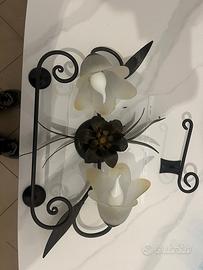 Vendo per trasferimento lampadario, porta carta igienica e porta asciugamano da bidet in ferro battuto con dettagli floreali