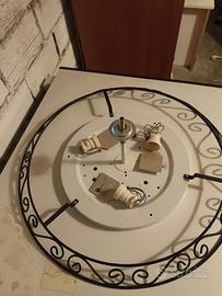 Lampadario con struttura in ferro battuto e plafoniera in vetro. Data la natura del prodotto, non spedisco, solo consegna a mano.