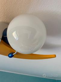 Lampada per soffitto, in metallo (omino) e legno (luna), ideale per l'illuminazione generale delle camerette dei bambini.