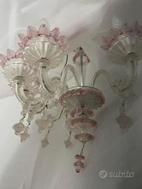 La lunghezza delle braccia (più lunghe delle lampade da parete classiche) è resa possibile dalla particolare antica tecnica detta 'a bossoli' che consiste nell'incastro di più parti di vetro.