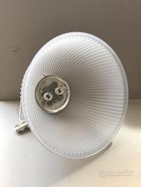 Lampadario con campana in plastica della ditta NOVALUX di BOLOGNA. Misure: altezza cm. 47, diametro cm. 42 Condizioni: buone, due piccoli forellini nella campana ininfluenti. Su richiesta fornisco anche le canaline per appenderlo nel soffitto. Il portalampade può essere sostituito con uno per lampade LED.