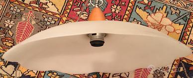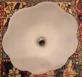 Bel lampadario in vetro satinato, con supporto in legno di ciliegio. Diametro 50 cm. Disponibile per ritiro a mani in Torino, zona Piazza statuto.