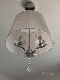Lampadario da sospensione acquistato da Barcaccia. Telaio in tessuto color bianco con dettagli in argento e con preziosi cristalli. Ideale per soggiorno e camere da letto crea un effetto elegante e glamour. Disponibile da subito con ritiro a casa.