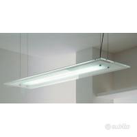 Lampadario de Majo Lampada a sospensione con lastra in cristallo extrachiaro serigrafato bianco. Montatura in metallo laccato grigio (RAL 9006).