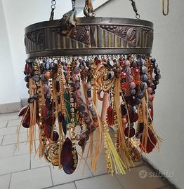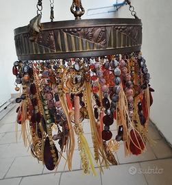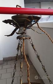 Vendo lampadario con struttura in ottone periodo deco' e decorazioni degli anni 60. Misure diametro 26 cm e altezza appeso 60 cm, altezza lampadario con decorazioni 25 cm. Prezzo richiesto 180 euro.