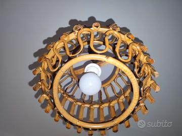 Meraviglioso pendente del Mid-Century completamente realizzato in rattan curvato di bambù e vimini intrecciato a mano. Questo affascinante pendente organico è stato prodotto in Italia negli anni '60 ed è attribuito a Franco Albini. In condizioni sorprendenti e con un bel colore miele. Le proporzioni perfette e l'elegante mix di rattan curvo e vimini intrecciato a mano sono perfetti per chi ama l'uso del rattan per creare meravigliosi capolavori. Il pendente è completato da una catena regolabile in rattan curvato. Un must per tutti gli amanti dello stile Costa Azzurra. Il pezzo perfetto per un progetto moderno organico o Mid-Century modern con un tocco marittimo. Dimensioni: Diametro cm 30 - Altezza totale cm 89