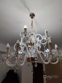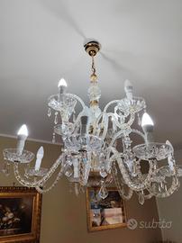 Per amanti del lusso e dell'alta qualità, vendo splendido lampadario di cristallo al piombo originale. Un pezzo d'arredamento d'élite che trasforma la luce in uno spettacolo di riflessi grazie alla purezza assoluta dei suoi cristalli. Struttura: 12 bracci in vetro lavorato con finiture metalliche dorate di alta qualità. Condizioni: Impeccabile, pari al nuovo. Tutti i pendenti sono presenti e integri. Vendo a malincuore esclusivamente per problemi di altezza del soffitto nella mia nuova abitazione; il lampadario necessita di uno spazio adeguato per essere valorizzato al meglio... "Acquistato a 700€ circa 17 anni fa, questo lampadario Swarovski rappresenta un classico intramontabile. Nonostante il tempo, la brillantezza dei cristalli è rimasta immutata, confermando l'autenticità e il valore del prodotto."