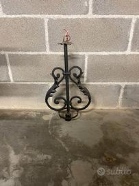 Lampadario di ferro battuto a sospensione , 1 luce bel design e ben conservato Solo struttura in ferro con portalampade e filo passante nella struttura