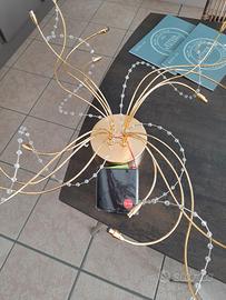 Lampadario di Lamp modello Bijoux con braccetti in colore oro e decorazioni con gocce di cristallo, illuminazione con lampadina a bispina. L'articolo è stato usato in ESPOSIZIONE all'interno del nostro showroom.