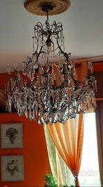 lampadario antico imponente in cristallo è ferro battuto
