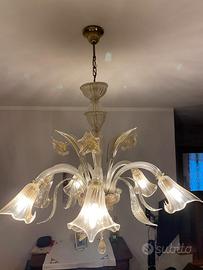 Lampadario a n. 6 lampade in vetro di murano e oro lavorato a mano da maestri muranesi in perfette condizioni. Prezzo trattabile.