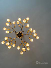Bellissimo lampadario in ottone e con i petali in vetro di Murano, della azienda italiana L'Originale.