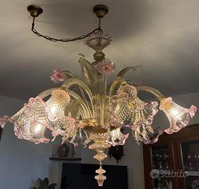 Lampadario in Vetro di Murano classico a 6 luci in ottimo stato di conservazione.