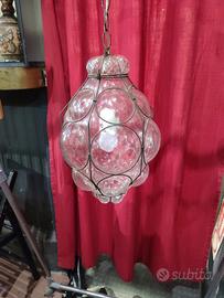 lampadario di Murano in vetro ingabbiato colore trasparente,perfetto dimensioni 43 x 28 cm.
