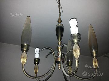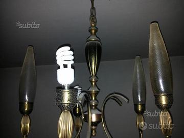 vendo questo lampadario di ottone con copri lampadine in vetro che si possono rimuovere come ho fatto io o lasciare dipende dalla lampadina che mettete tutti gli attacchi sono e14 e sono tutti funzionanti. PREZZO 30?