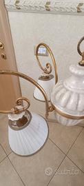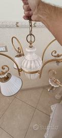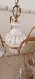 Lampadario di ottone e ceramica marca Marioni