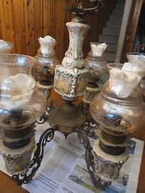 Lampadario vintage anni '50 grande in ottone/porcellana; antico di lusso a 6 luci - azienda Capodimonte in abbinamento a luce a parete della medesima azienda. Acquistato a suo tempo e inutilizzato da ora - FUNZIONANTE ed in ottime condizioni.