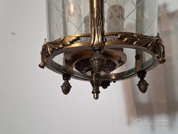 tre i punti luce di questo lampadario con la forma ovalizzata in ottone e vetro, buonissime le condizioni.