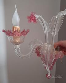 Vendo un lampadario di vetro rosa dimensioni 75 cm 60 cm due applique di vetro rosa cm 35 x 45 cm in ottime condizioni