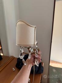 Set completo di lampadario con cristalli e due abat-jour abbinate. Colore dorato e bianco. Scrivetemi per ogni informazione! Ritiro a Verona, zona stadio. Se si rimane a Verona possiamo accordarci per la consegna.