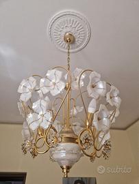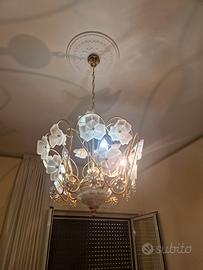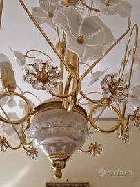 Vendo lampadario elegante con abat jour abbinate in vetro e Swarovski con laccatura dorata