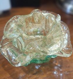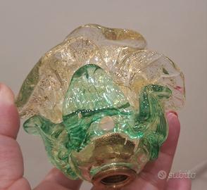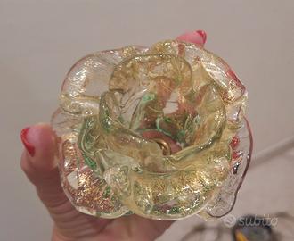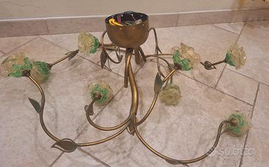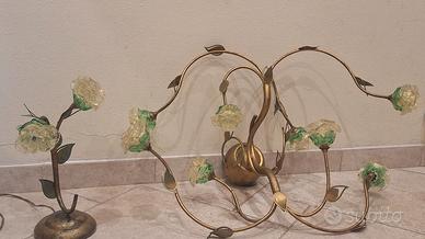 Splendido lampadario da soffitto, e abat-jour abbinata, con struttura in metallo color oro anticato e rose di vetro di Murano e foglia oro realizzate a mano