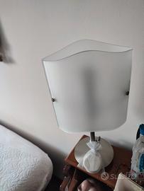 Vendo elegante lampadario e coppia di abatjour dal design moderno e minimale, caratterizzati da un raffinato vetro satinato bianco con profilo superiore ondulato e finiture in metallo satinato. Perfette per camera da letto.