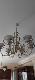 vendo lampadario in ferro battuto colore avorio a sei luci e tre applique uguali al lampadario