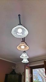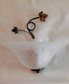 lampadario e applique stile rame, stessa marca, la differenza di colore nel vetro è solo una lampadina diversa dalle altre.
