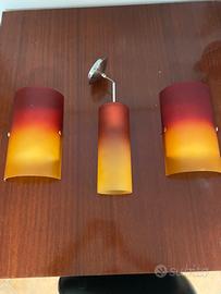 N.2applique da muro e 1 lampadario im vetro colorato.
