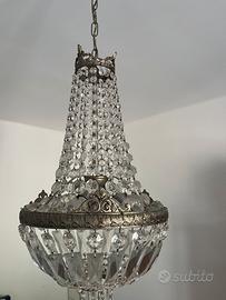 lampadario vintage a cesto realizzato in bronzo e cristallo (anni '60) Con applique abbinati Tutto funzionante