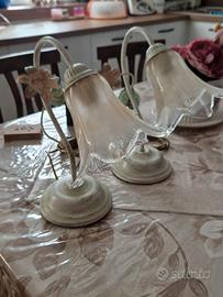 lampadario e coppia di abat jour in ferro battuto