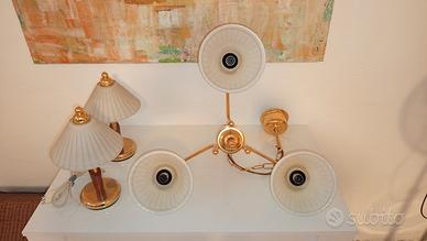 Vendo lampadario a tre punti luce e due lampade in coordinato, tutto perfettamente funzionante, le lampade hanno qualche segno come si vede in foto.