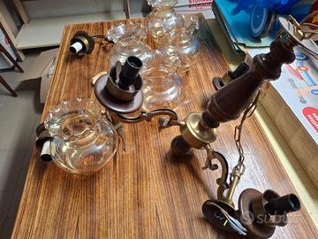 Lampadario e lampade da muro in stile vintage anni ‘70. Perfettamente conservati e funzionanti. Bocce in vetro prive di graffi. Dimensioni: cilindro inferiore d.54 mm,cilindro superiore, d.110 mm, altezza 170 mm (misure esterne) Ritiro a carico del acquirente, eventuale spedizione a carico del destinatario. Prezzo di vendita 35 €. Costo spedizione 20€