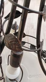 lampadario e piantana in ferro battuto originale e di ottima qualità, la piantana ha il regolatore di intensità luce.