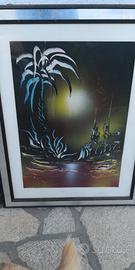 Lampadario in ferro battuto e quadri di pittore toscano