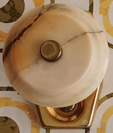Vendo lampadario e accessori bagno, come da immagini, 2 appendi accappatoio, 2 porta asciugamani, una mensola, 2 appliche luci, porta salvietta con anello rotondo per bidet. Finiture in onice e dorature in oro zecchino. In buone condizioni.