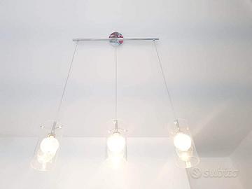 vendo Lampadario Moderno molto bello elegante, G9 Max 40w 0,3m, in perfettissime condizioni,funzionante, e' solo schieggiato ,si puo' vedere dalla foto solo un pezzo di vetro ma si puo' sistemare con pochi soldi.