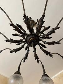 Lampadario vintage fatto a mano da un artigiano del settore. Due bocce di scorta conprese. Ritiro a carico dell’acquirente Per info ulteriori sono a disposizione