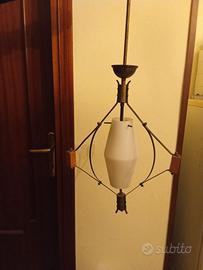 Vendo lampadario vintage fatto a mano, in ferro battuto e legno con portalampada in ceramica bianco opaco. € 40
